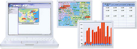 客戶通過利用互聯(lián)網,在辦公室里就能夠準確掌握機器的運轉信息。同時利用GPS捕捉機器的工作位置??梢栽?5萬分之一的地圖上顯示其現(xiàn)在位置、工作地點履歷、全機位置等最新情況。
