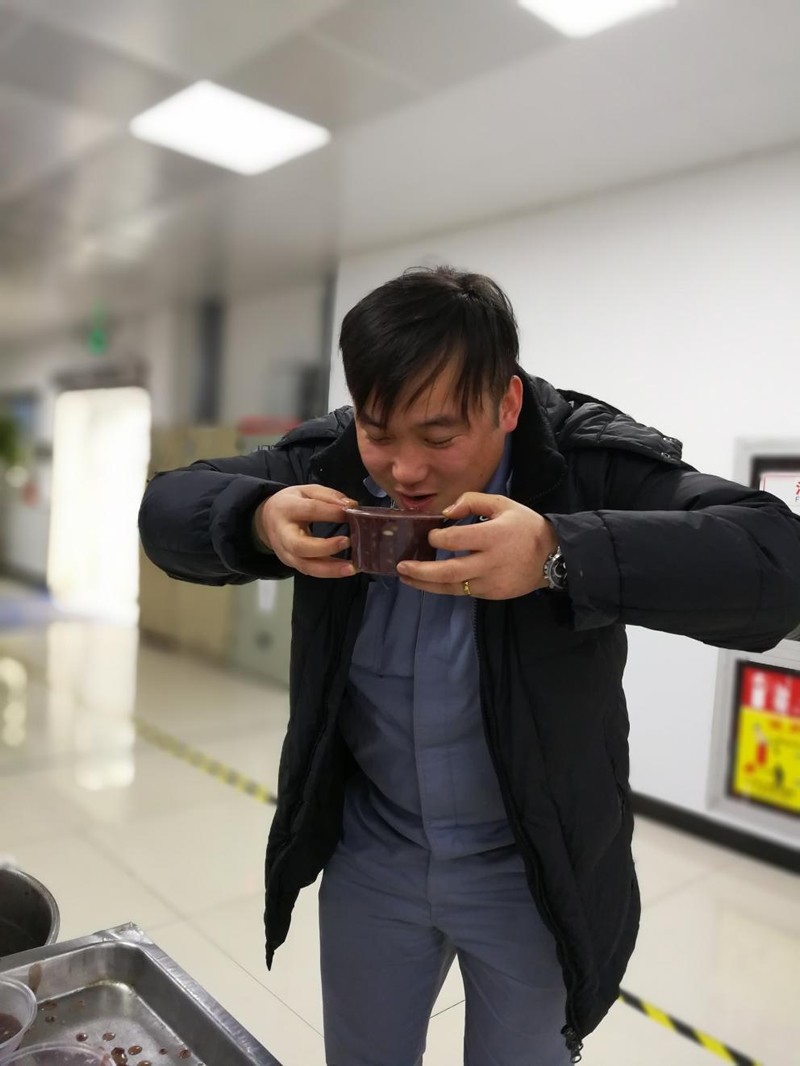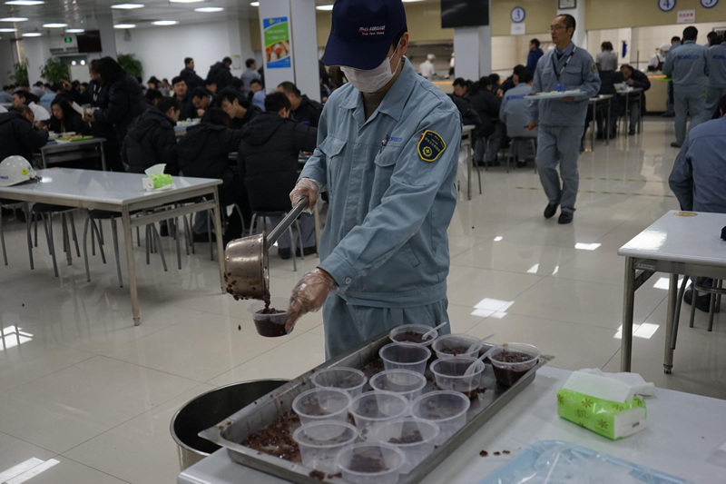 中午12點在杭州神鋼食堂,CSR委員會成員為員工派粥活動熱鬧登場,大家喝著熱騰騰的臘八粥,感到非常開心,都說今年的臘八粥熬制的特別香糯。