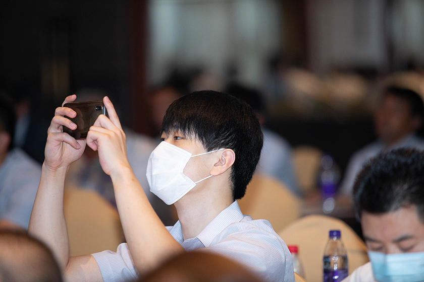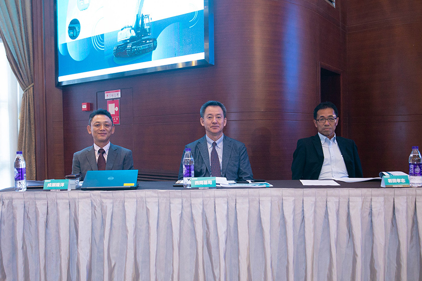 接下來市場統籌本部本部長巖田孝志先生在發(fā)言中分析了液壓挖掘機的市場走向,并表示目前神鋼占有率仍保持著較好的發(fā)展勢頭,而受疫情影響未能到場的全球生產管理控制(GPC)部長齋藤敬治先生也通過視頻連線發(fā)言,他分別對2021年上期和下期進行總結發(fā)言,并對全球總需求進行說明,也期待著明年能和大家面對面交流。