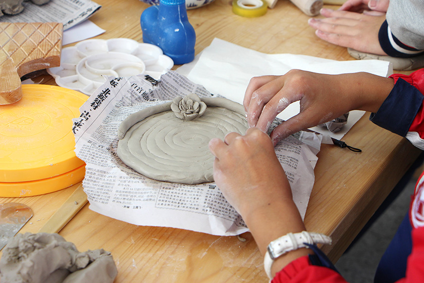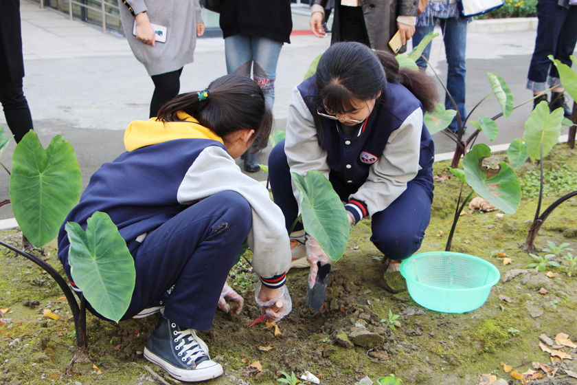儀式前,來自全區(qū)的教育局代表和7家企業(yè)代表在校內(nèi)進行了參觀,栽種、覆土,繪畫、陶藝……向陽橋中學豐富而有趣的課程吸引著在場的每一位來賓。